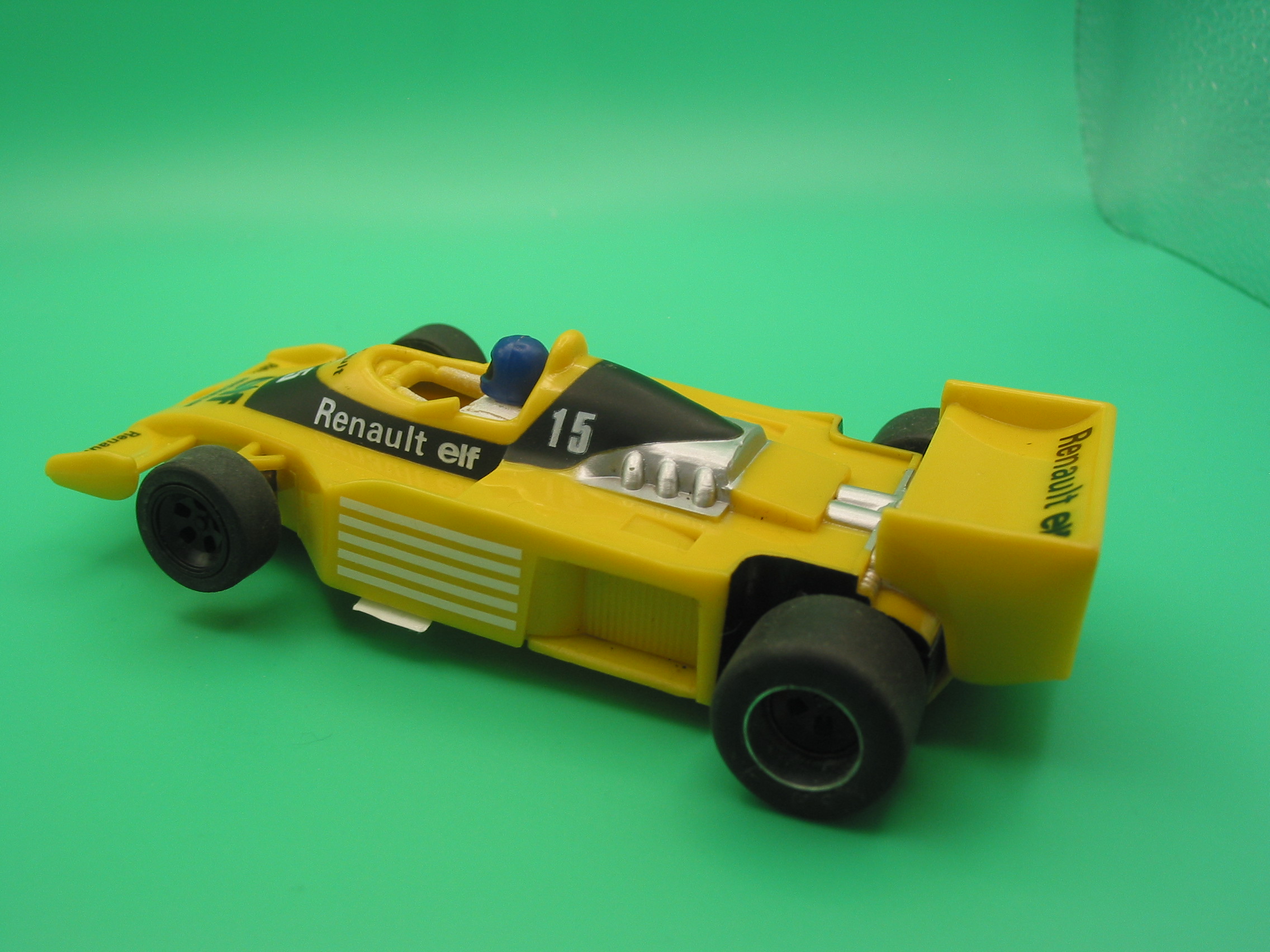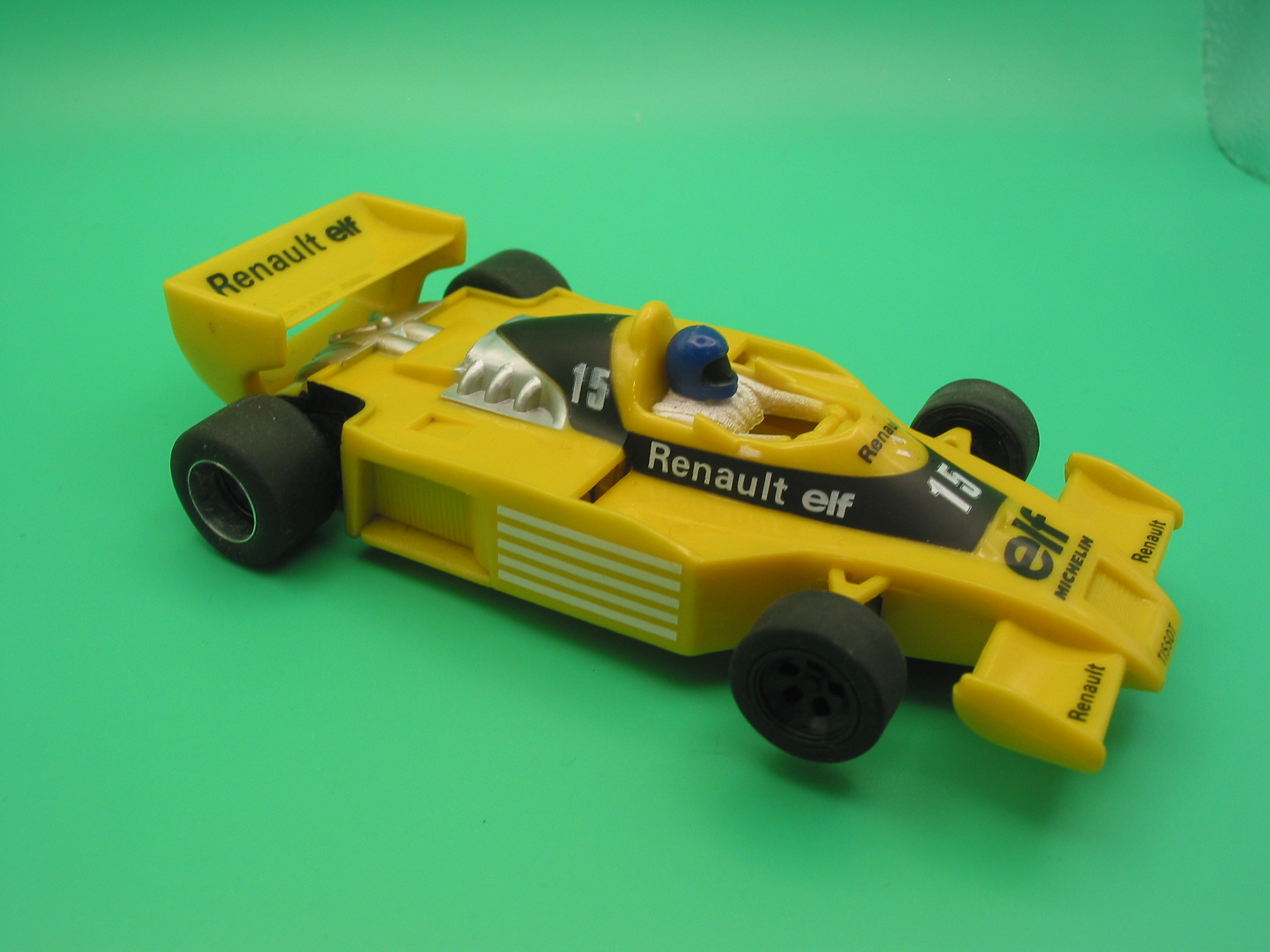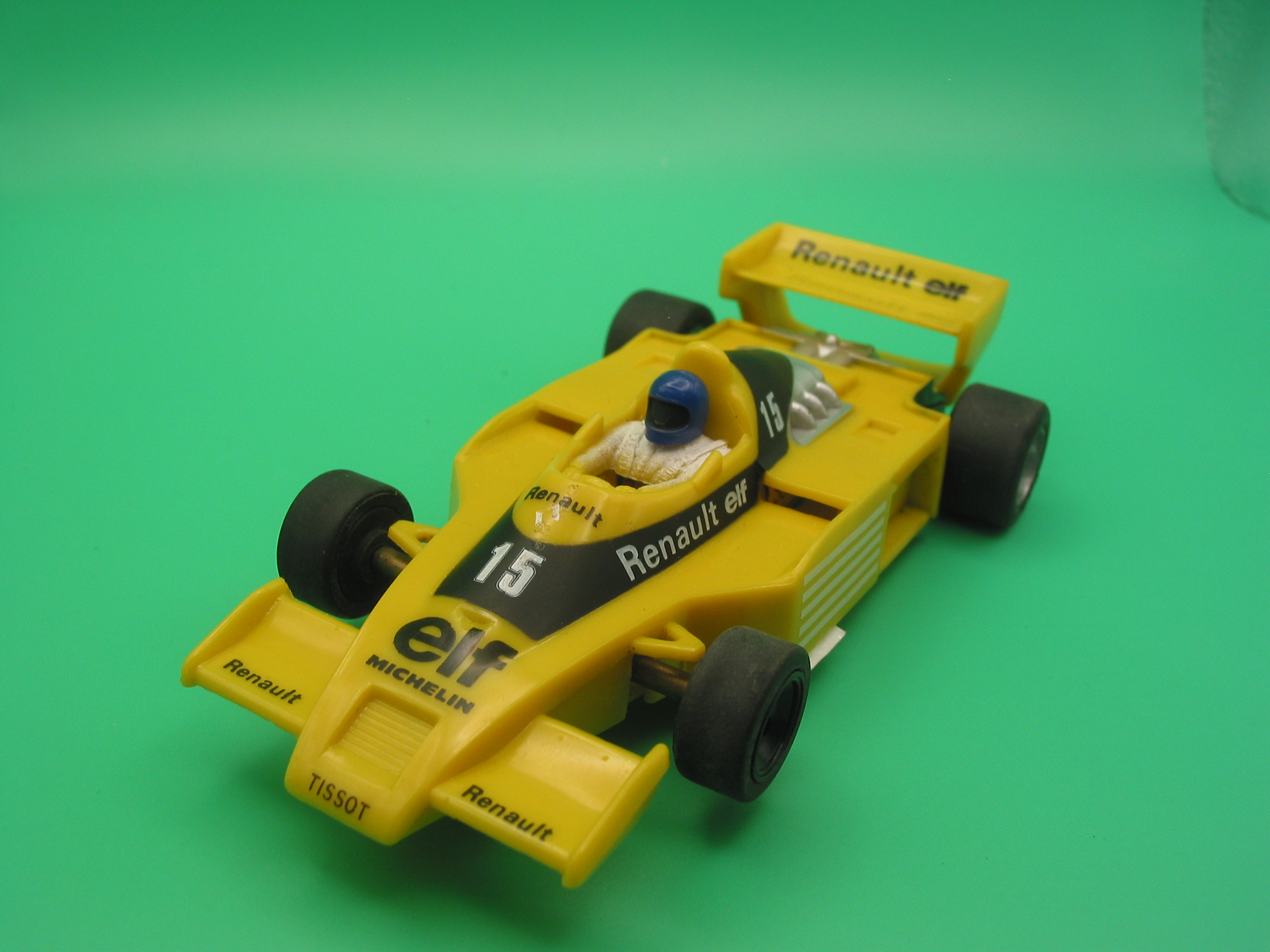 SCALEXTRIC C134 RENAULT RS01 LOTS OF MODIFICATIONS CUT CHASSIS , SCALE AUTO MOTOR, SLOT IT REAR AXLE, ALUMINIUM WHEELS, NSR TYRES, FIXED FRONT AXLE