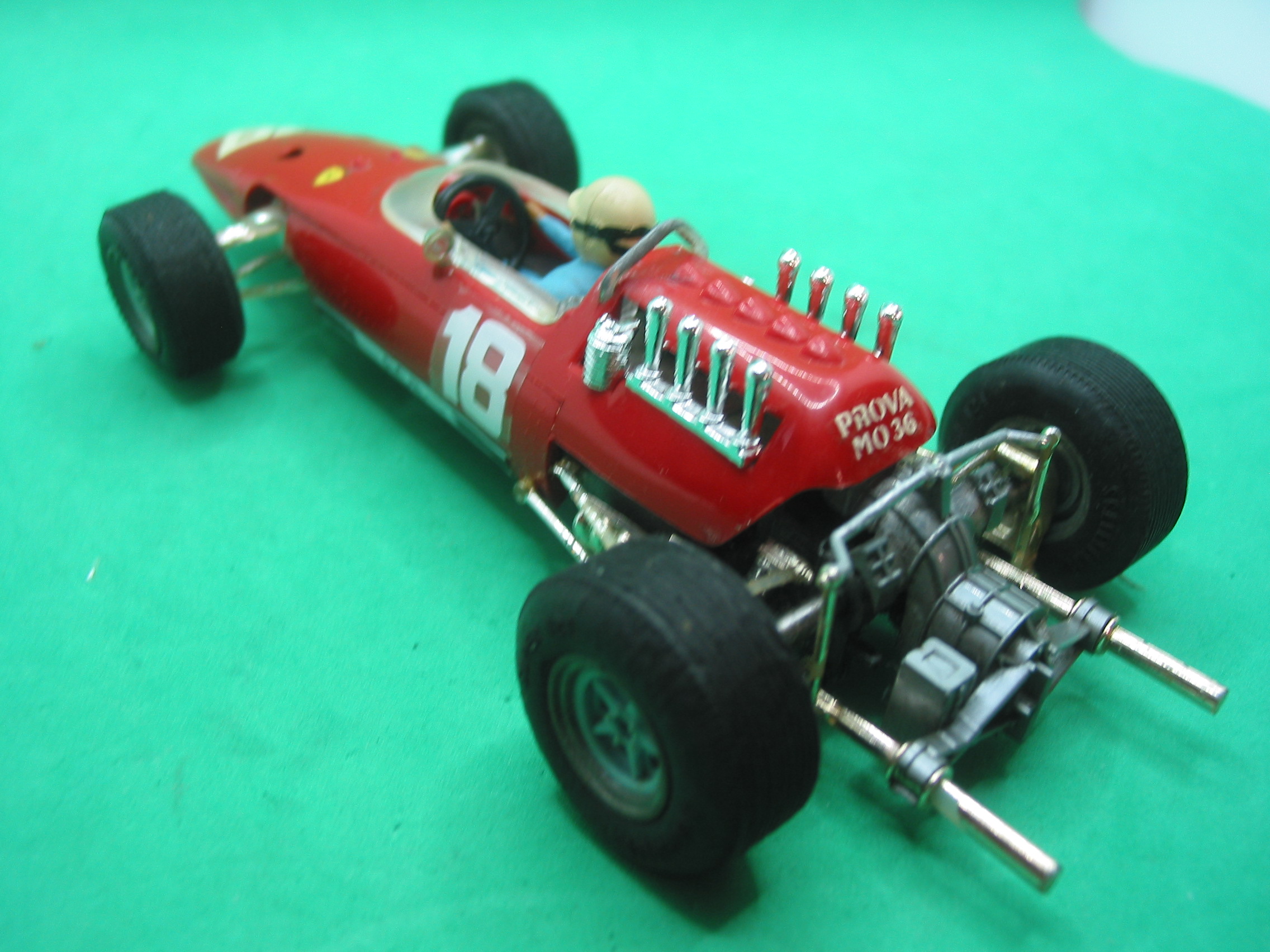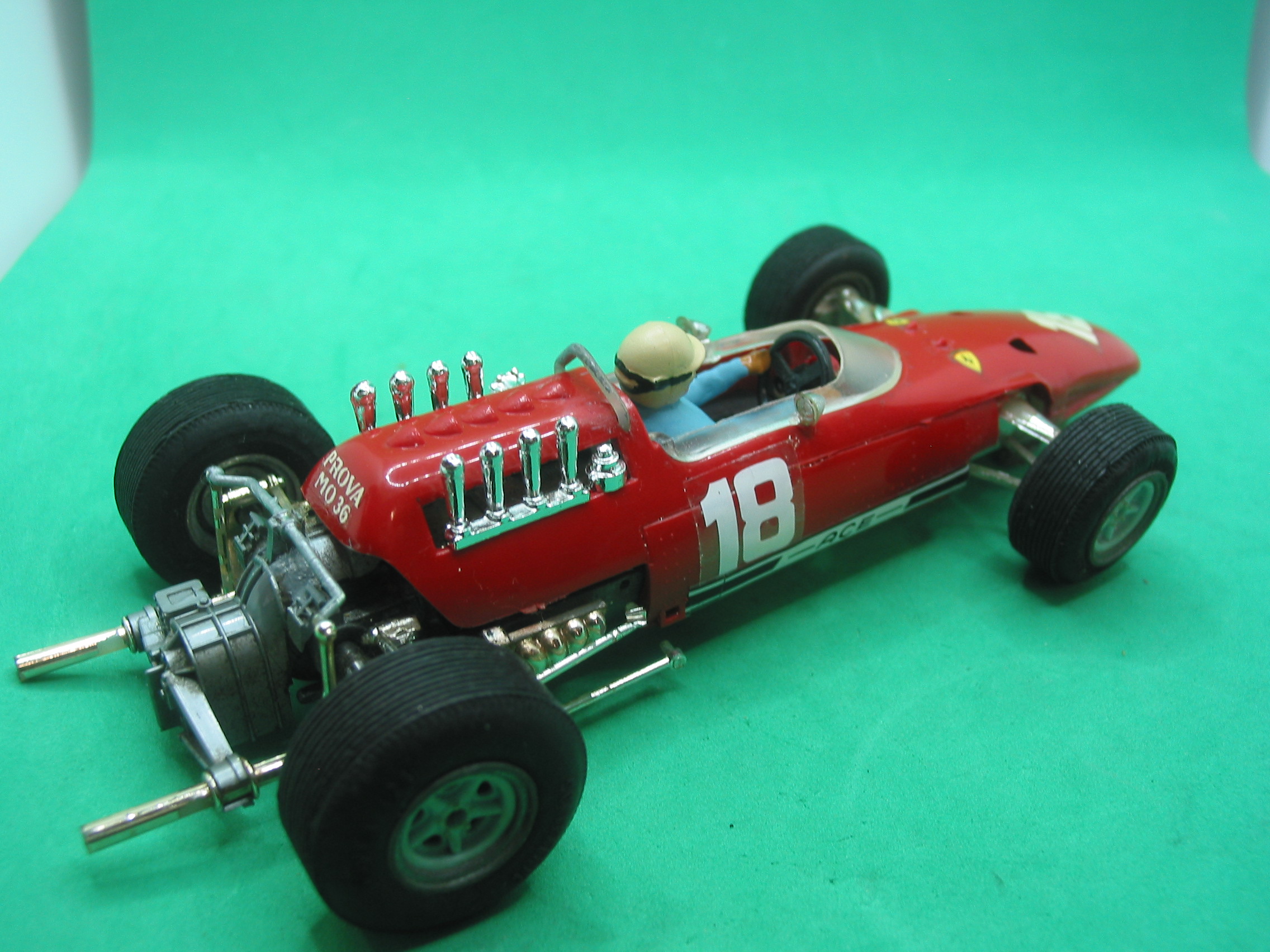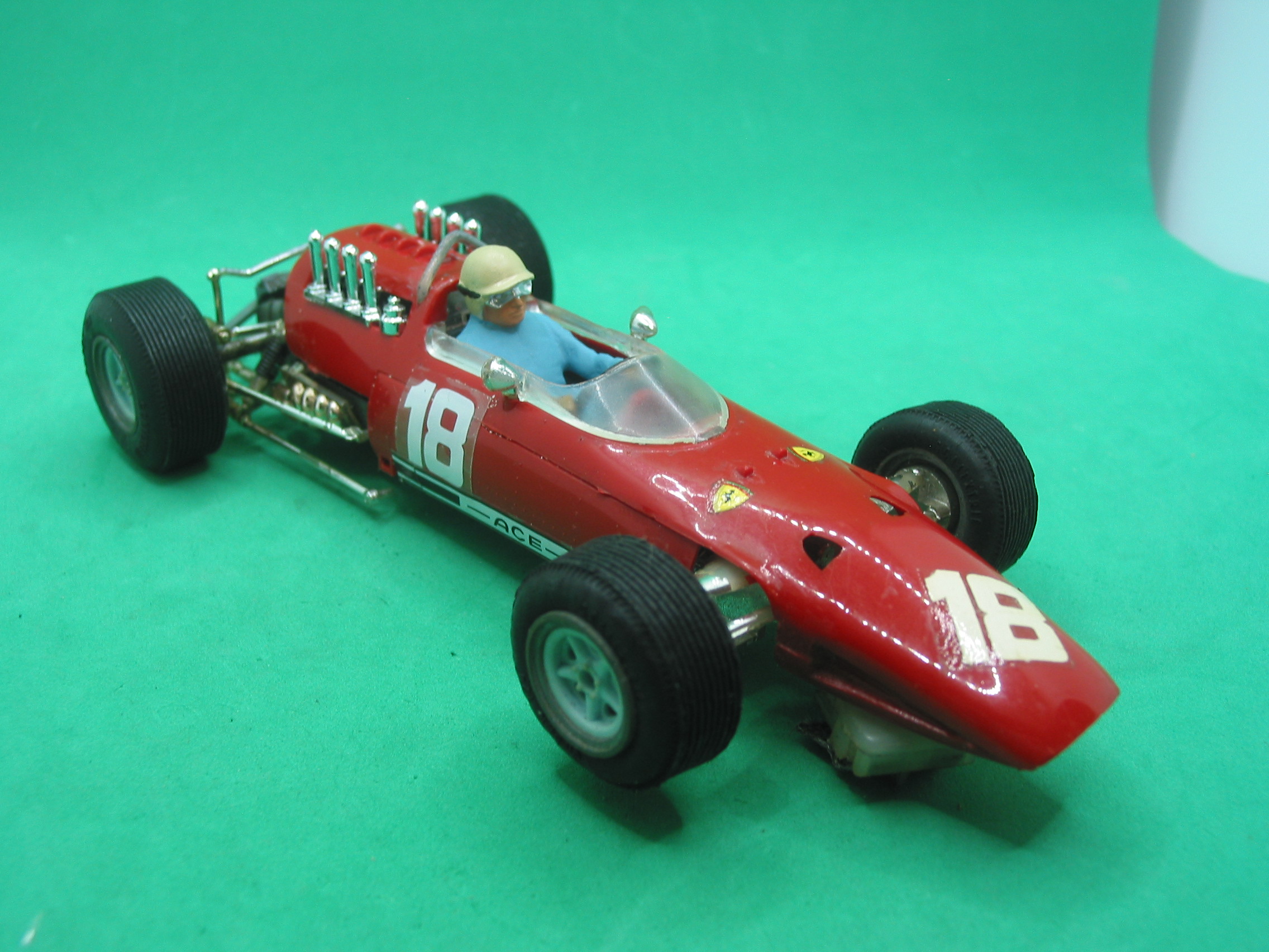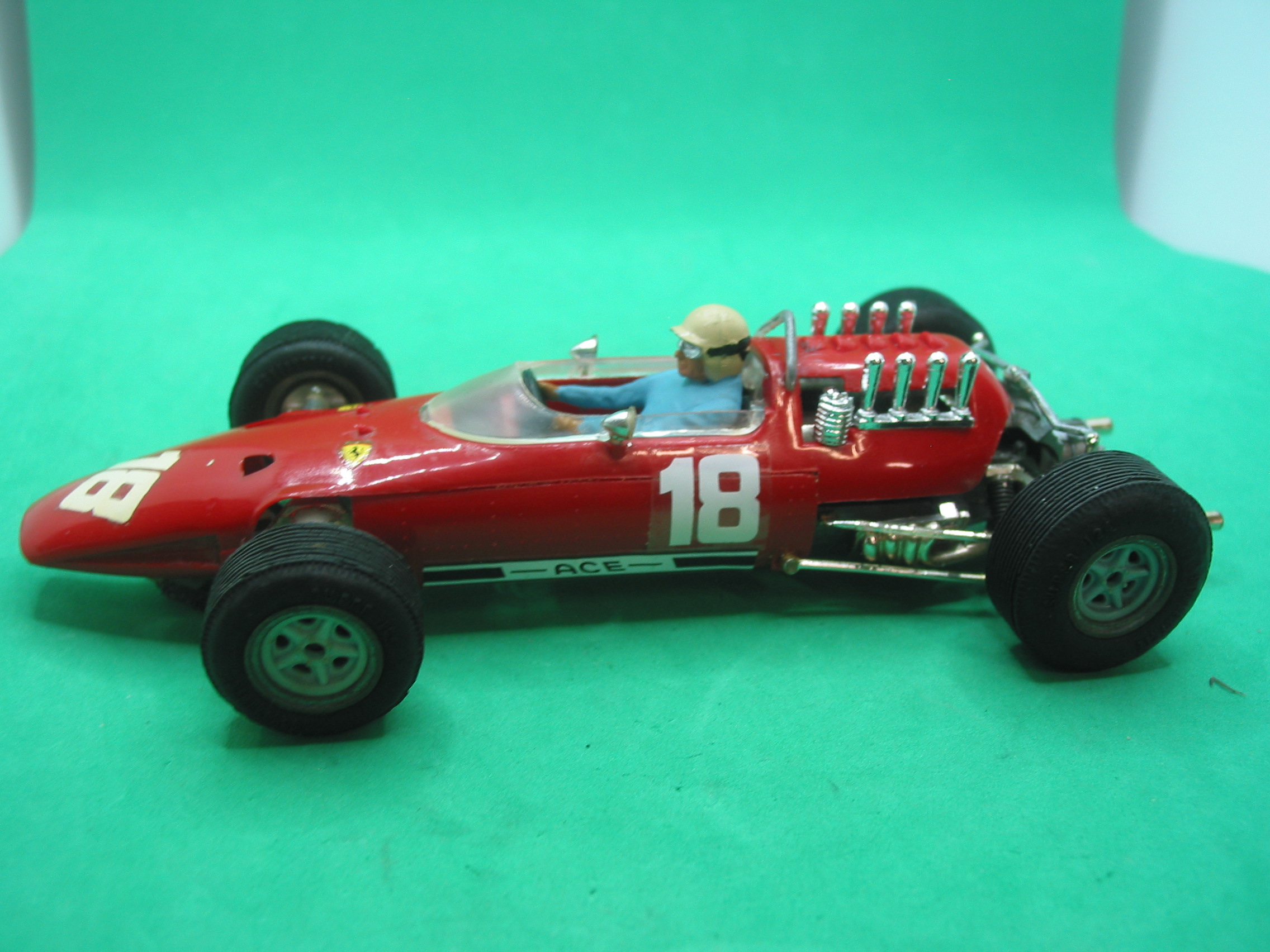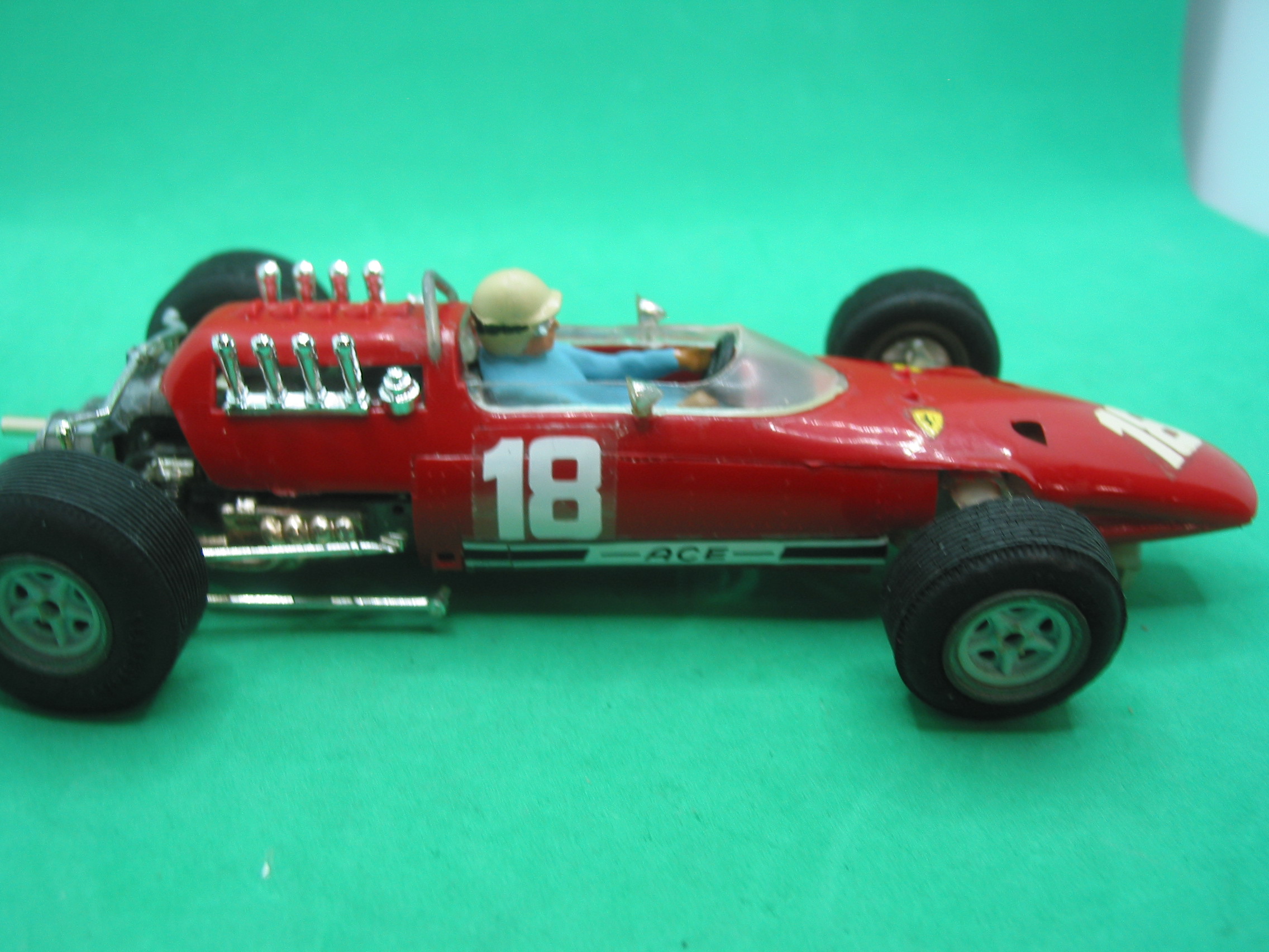 VINTAGE Scalextric 24c/501 super 124 Ferrari V8 158 F1 1/24th scale -looks and runs well – repro screen/carbs/side decals – vg unboxed