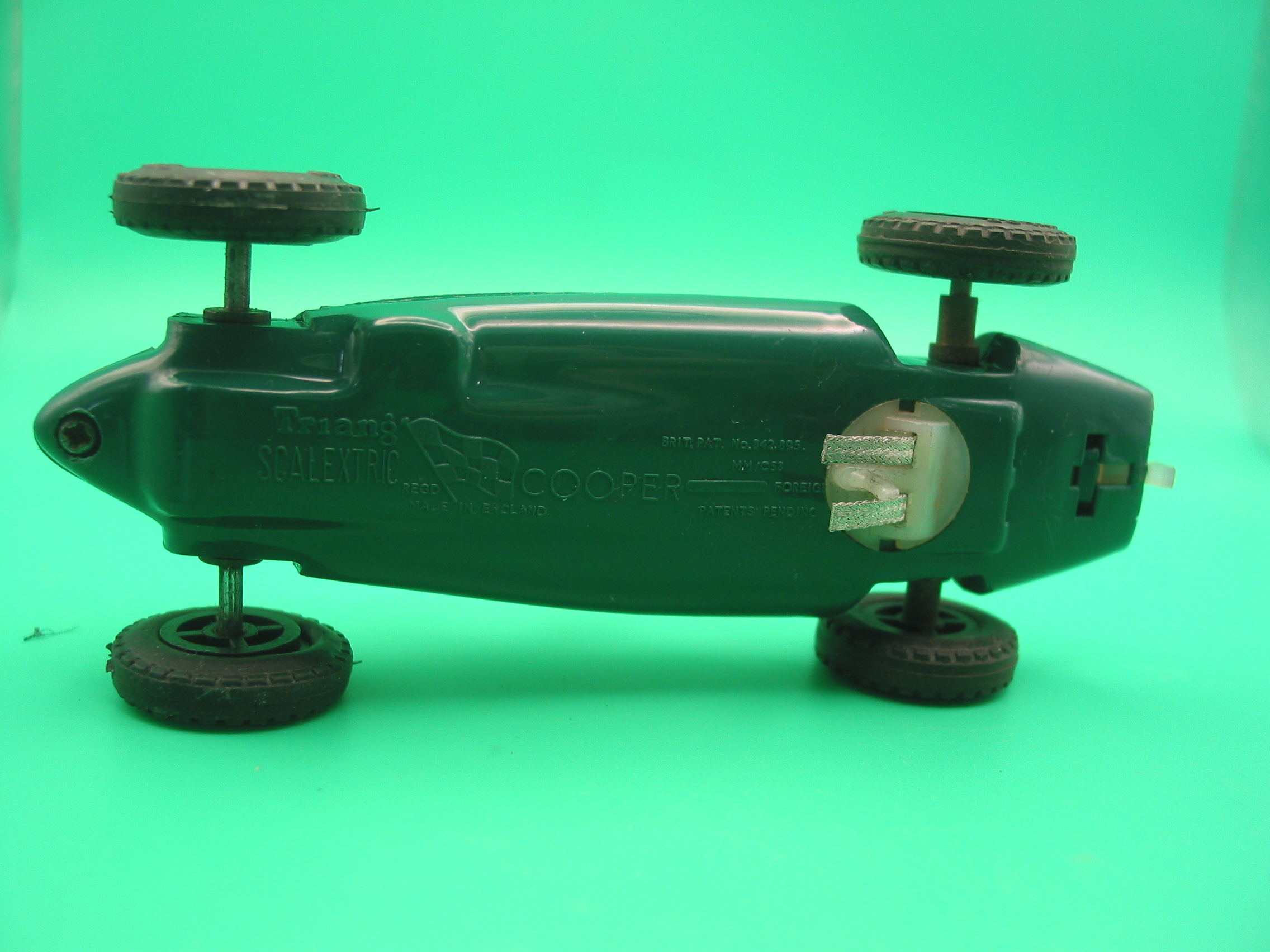 VINTAGE TRIANG SCALEXTRIC C58 COOPER GREEN ROUND PIN GUIDE VERY GOOD CONDITION ORIGINAL ROUNDALS WITH A NICE PATINA VG+