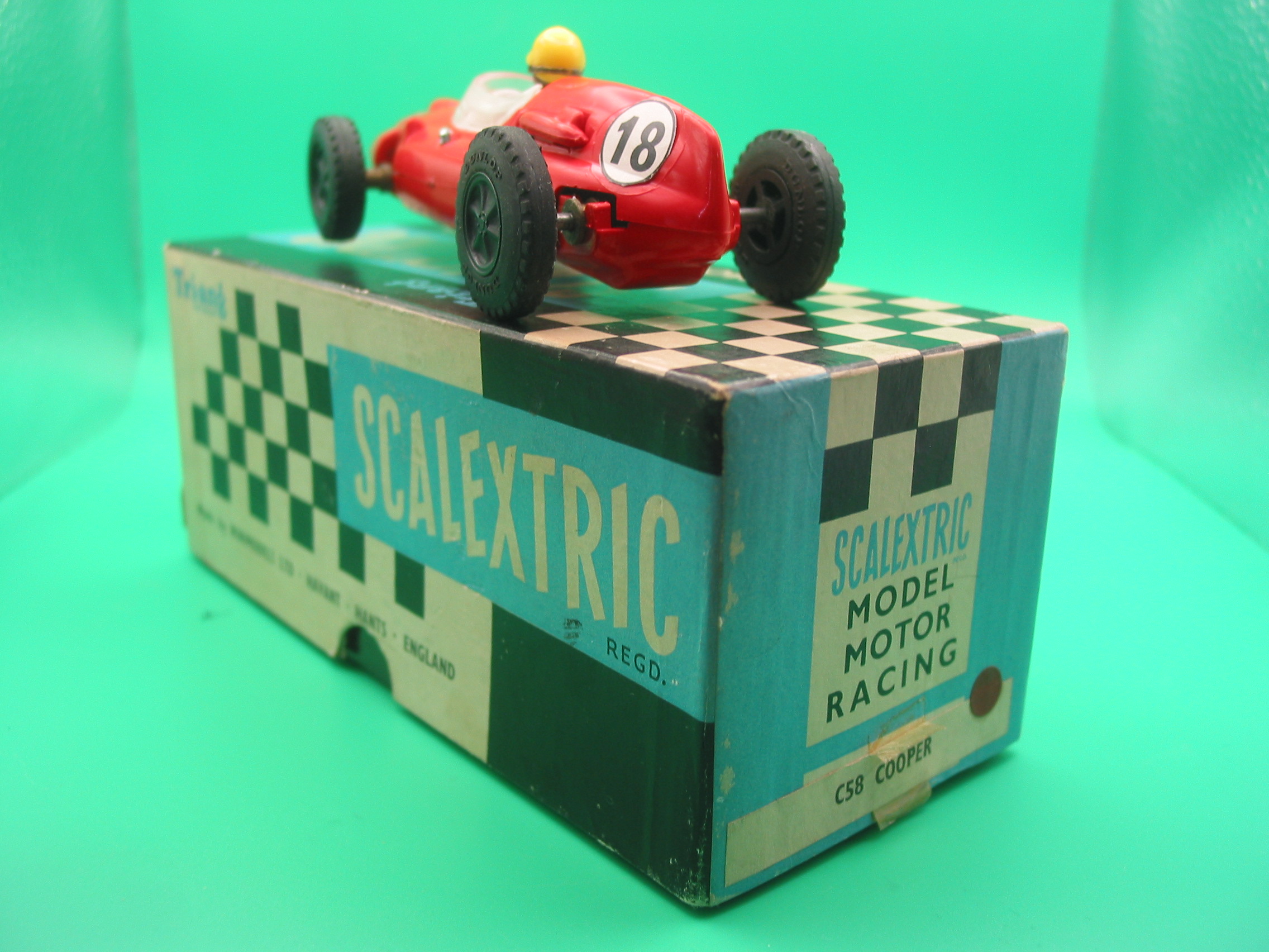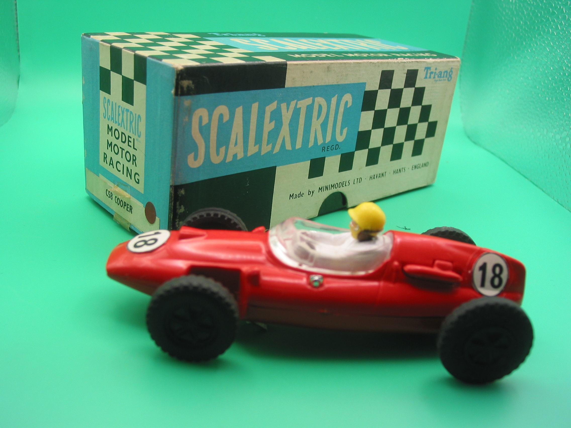 VINTAGE TRIANG SCALEXTRIC C58 COOPER RED ROUND PIN GUIDE DEEP RED COLOUR WITH NO MARKS OUTSTANDING CONDITION BOX AND INSTRUCTIONS EXC