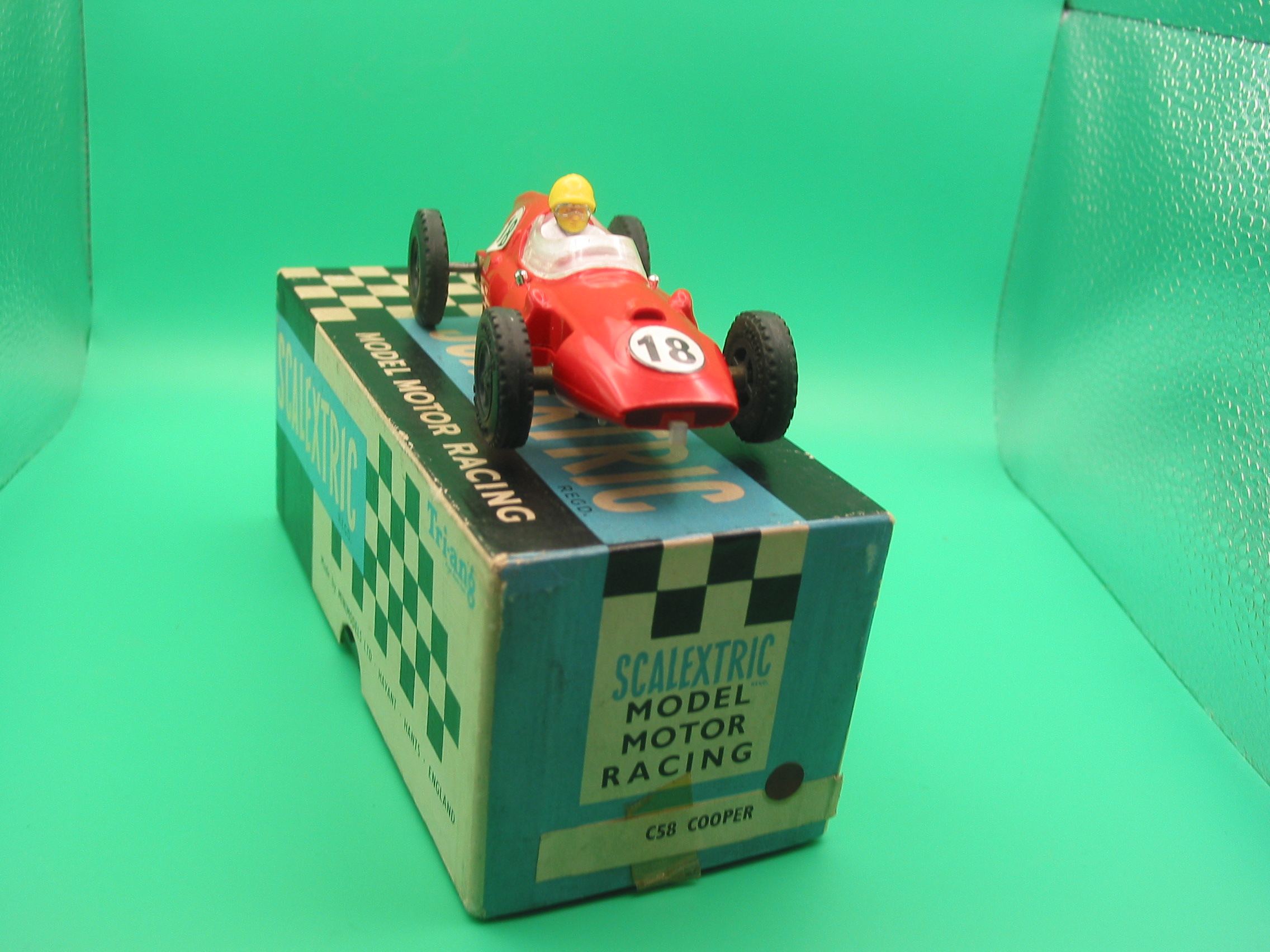 VINTAGE TRIANG SCALEXTRIC C58 COOPER GREEN ROUND PIN GUIDE VERY GOOD CONDITION ORIGINAL ROUNDALS WITH A NICE PATINA VG+