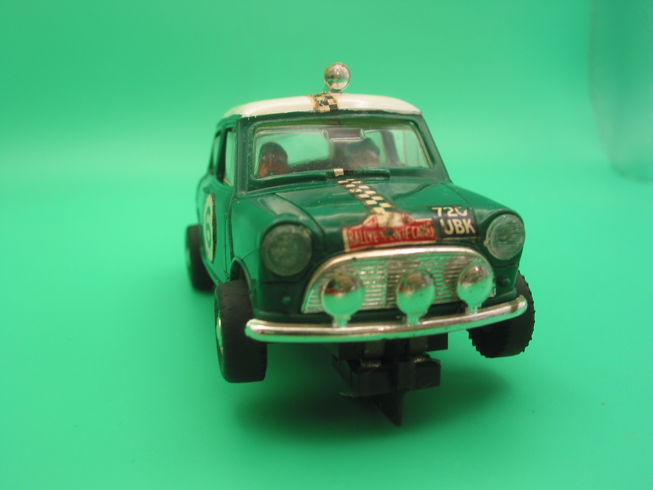 VINTAGE TRIANG SCALEXTRIC c7 Mini Cooper green #7 type 2 NO Spot light, larger diameter wheels vg - good working order, all original car vg+